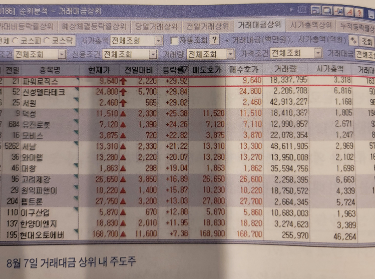 1. 거래대금이 크고 등락률이 높은 종목 위주로 왜 올랐는지 파악(재료확인,주식상승시킨뉴스)