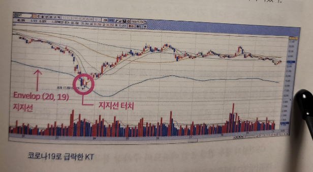 평균으로부터 얼마나 벗어났나를 볼 수있는 보조지표가 엔벨로프이다.