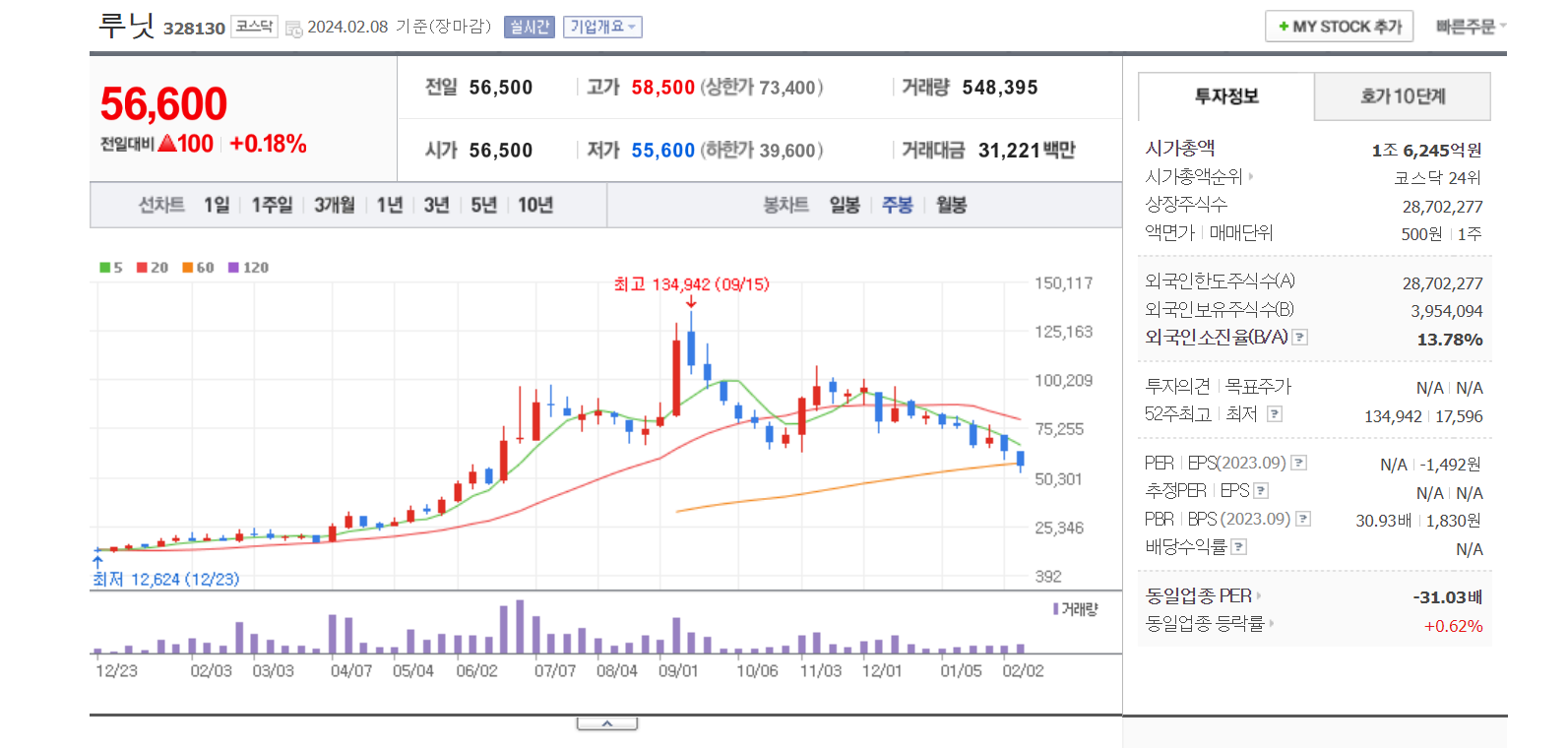 루닛은 의료 AI관련주이다. AI라는 글로벌 트렌드에 속하는 재료를 가진 대장주로 큰 상승을 보였다.